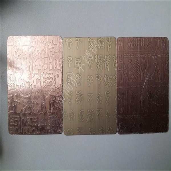 1)采用德國先進(jìn)水鍍技術(shù),使不銹鋼表面鍍上一定厚度的真紫銅,紅銅,黃銅。達(dá)到能做舊拉絲仿古高端裝飾,解決了以往銅鋼復(fù)合板材料由高分子膜復(fù)合易分離、起泡的缺點(diǎn)。